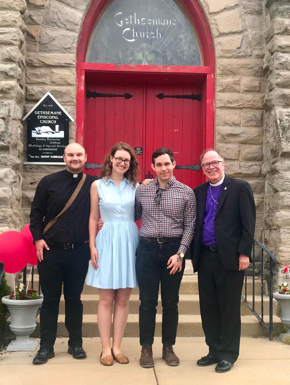 ... the Holy Baptism at St. James' Cathedral of Yara Magdalene Evelyn, born February 16, daughter of the cathedral's Associate Priest for Outreach Mother Anna Broadbent and her husband, St. Edmund's, Chicago, Priest-In-Charge Shawn Evelyn. Regretfully we have no photo of Yara, but many at Ascension will recall that Mother Broadbent assisted at Ascension and lived in the Ascension coach house 2018-2020, and Sean joined her in the coach house 2019-2020 (during which year this photo was taken).