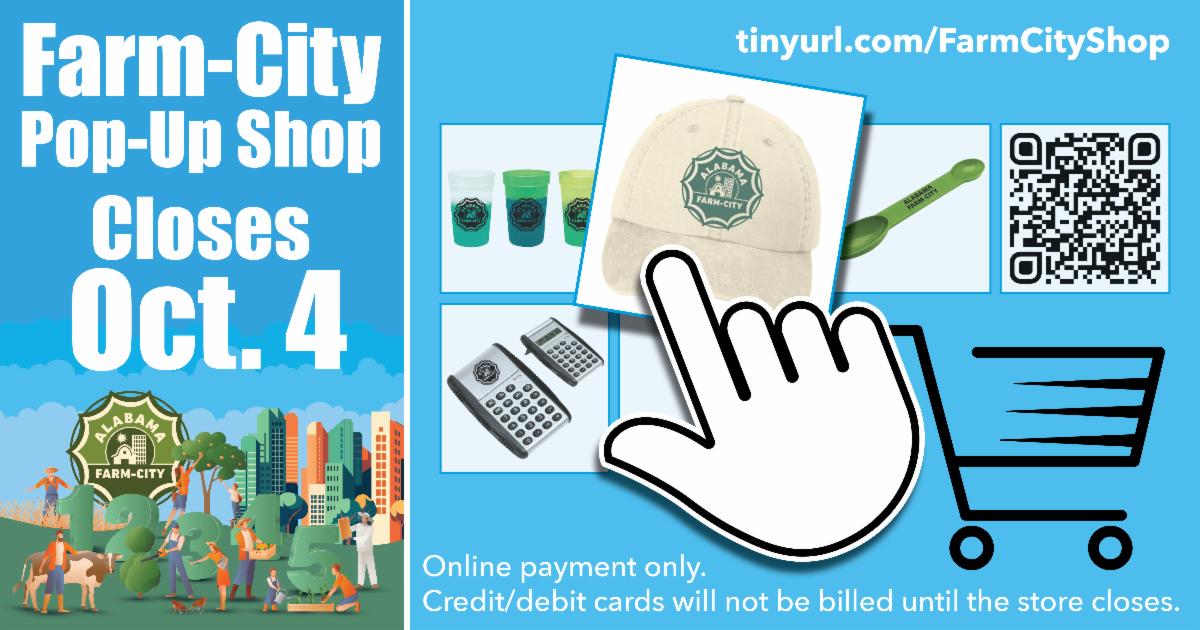 The Alabama Farm-City Pop-Up Shop is an online store stocked with branded items perfect for upcoming meetings and events.