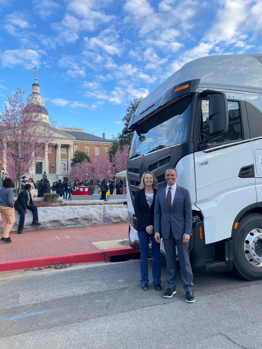 Clockwise starting at the top left: Governor Moore addressing the Women's Legislative Caucus; presenting HB 807 (my comprehensive online privacy bill); with Sen. Augustine in front of an electric truck at the rally for our Clean Trucks bill; speaking at the rally; soon-to-be-Sen. Kelly, Delegate Korman, and me with Swahili Rao, who was serving as a legislative page this week.