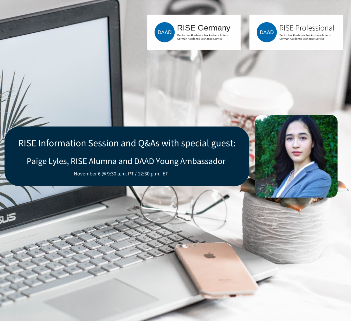 In this info session, we focus on Research Internships in Science and Engineering. Learn about the program, the application process, and tips for success. This session will feature RISE alumna and DAAD Young Ambassador Paige Lyles from UC Berkeley. Come with your questions! All are welcome!