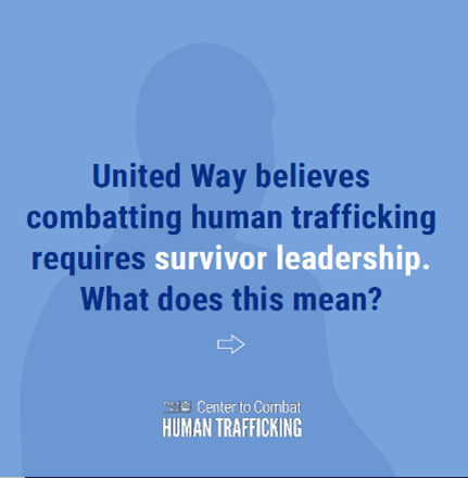 At United Way, we believe survivors should be leading the movement to end human trafficking. That’s why the Center is working with Rising Worldwide, Survivor Alliance, and Polaris to follow the lead of survivors. Learn about what this means and what you can do to support survivor leadership via a blog post from survivor leader Eseosa Eguamwense, which will be published January 4th on the United Way blog.