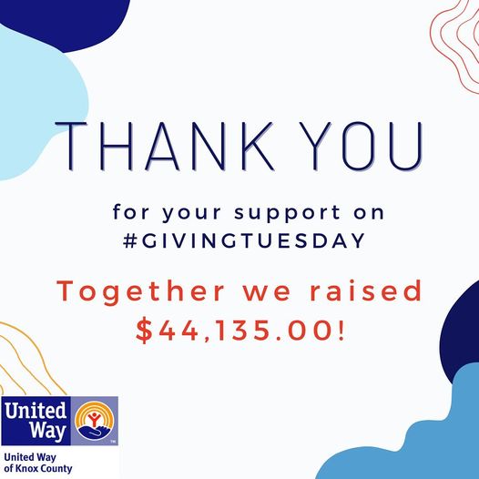 United Way of Knox County would like to thank the individuals who donated to our #GivingTuesday campaign and the Knox County Foundation for their $15,000 match! The results are in, and they’re amazing! $29,135.00 was donated by check and online. Adding the $15,000 Knox Community Foundation match gave us an impressive total of $44,135.00! The icing on the cake is that United Way will be able to add a new After-School Program in 2022! Thanks again to everyone who took time out of their day to donate and invest in children’s education in Knox County!