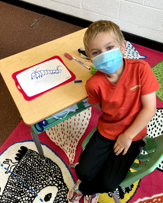 This is certainly the year of adapting to change! Since we cannot have large groups of adults entering the building, we plan to include photos of students within their classroom environments, indoors and out. Each upcoming newsletter will present a different classroom at work and play!