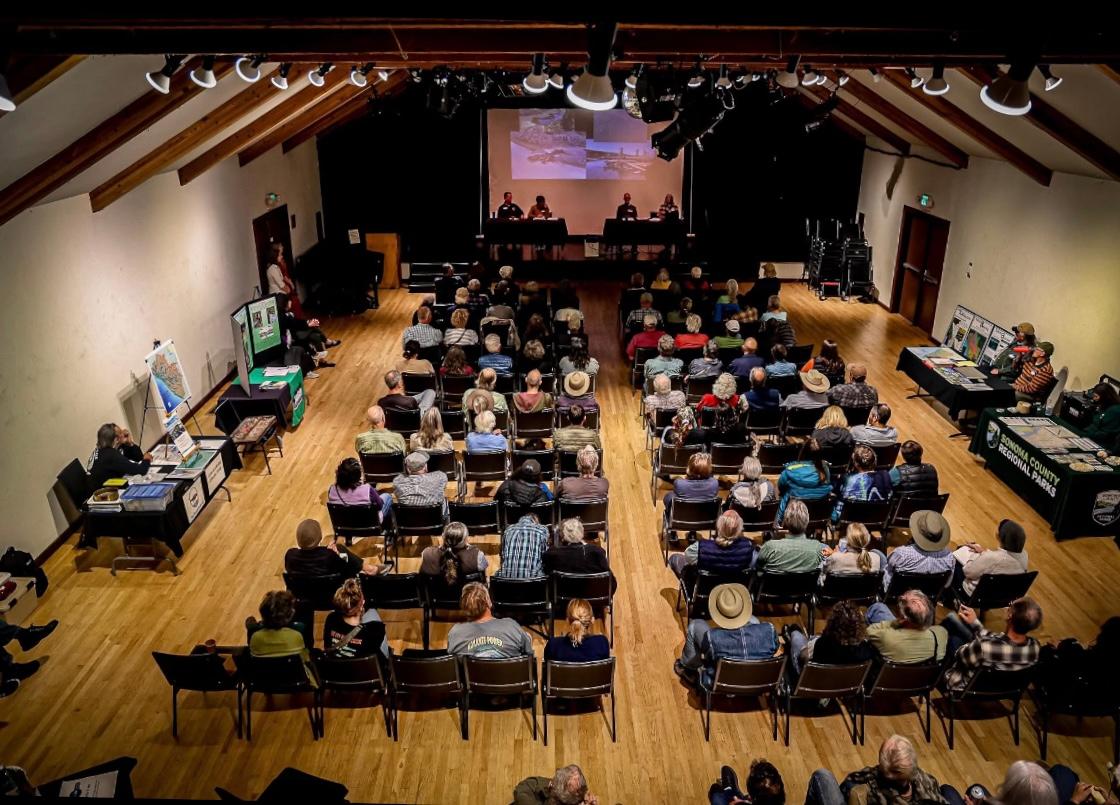Supported by CDFW’s Fisheries Restoration Grant Program, this event marked the official public kickoff of a long-term effort to restore the estuary. For more than a year, environmental science and design firm Prunuske Chatham, Inc. (PCI) has gathered data to understand the current habitat conditions in the estuary and develop a plan for its restoration. During the panel discussion, PCI geomorphologist and stream restoration expert Lauren Hammack outlined proposals for the first phase of restoration. These include the installation of woody structures to increase stream channel complexity and provide shelter for juvenile salmon to feed and grow, and restoring the emergent wetland at Mill Bend, which was historically much larger. Expanding this wetland would significantly boost aquatic vegetation and provide essential habitat for young salmon under a wider range of conditions. For more information on these proposals, view the story map prepared by PCI, which illustrates current conditions in the estuary, historical factors, and opportunities for restoration. Matt Erickson, Fisheries Biologist and Grant Manager at CDFW, discussed the importance of funding this effort in the Gualala estuary. Carrie Lukacic, Principal Environmental Planner at PCI, shared what’s next for the project–from permitting to securing additional implementation funding.