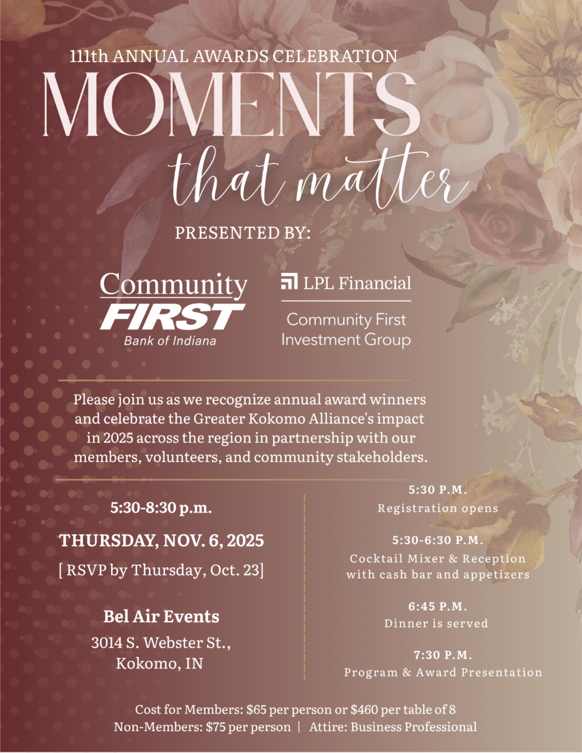 Join us as we celebrate October’s Small Business of the Month. Enjoy networking, light refreshments, and a short award presentation recognizing one of Kokomo’s outstanding local businesses.