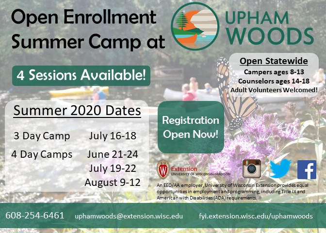 Upham’s very first Summer Program Coordinator, Ariel, is is already working hard and getting pumped for Summer Camp 2020! And guess what? Open Enrollment Registration is already open! This is the earliest that Upham has ever opened registration, so click this link to