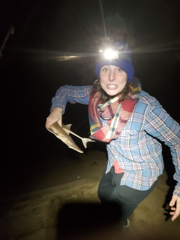 Pictured here with a shovelnose sturgeon she caught while on a canoe camping trip on the Wisconsin River this past November.