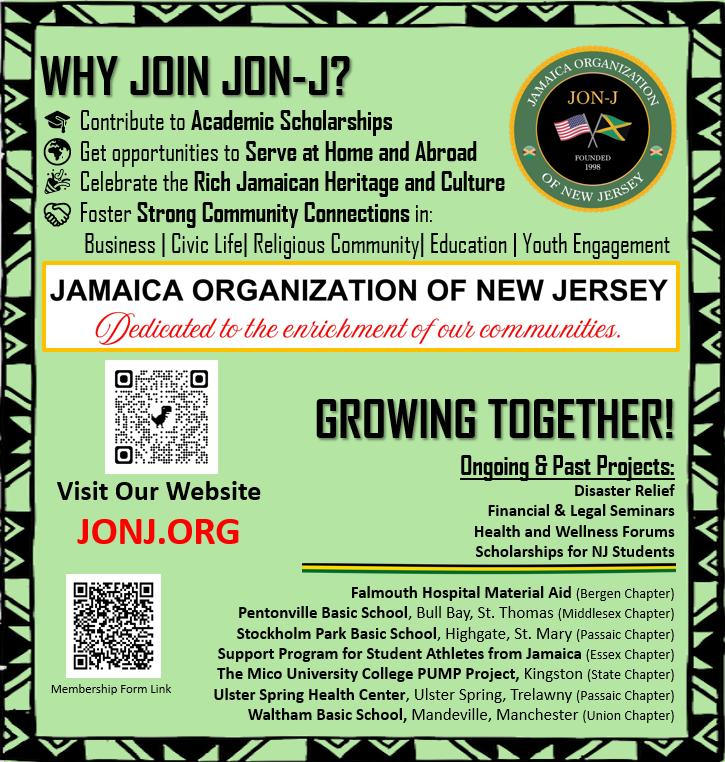 The Jamaica Organization of New Jersey (JON-J) is a 501(C)3 nonprofit organization with a dual purpose of building and strengthening ties amongst people of Jamaican heritage in communities across New Jersey and serving as a resource to give back to our homeland.