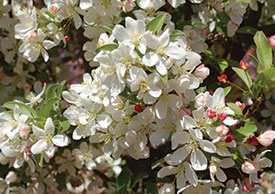 An attractive crabapple selection with a compact habit that prefers to be planted in full sun for optimal blooms. The Cinderella Crabapple boasts snow white spring blooms followed by dark green deeply cut summer foliage, finishing the season with a yellow-gold fruit display. These fruits are very attractive to birds, and the branching structure of crabapples make for a great shelter.