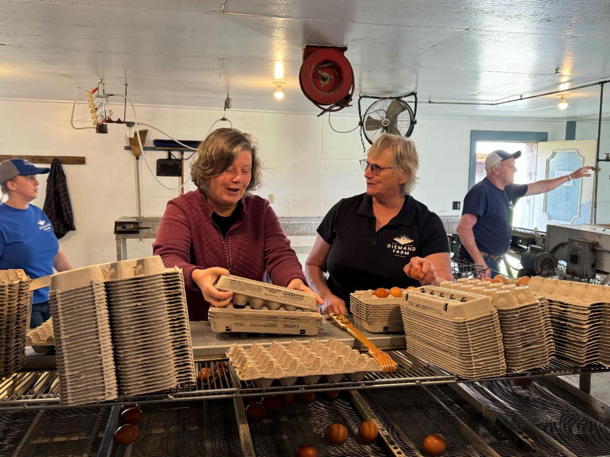 I *tried* to fill egg cartons and was ridiculously inept, outpaced by Anne Diemand about 20 to 1 (or more). Annie’s face says it all.