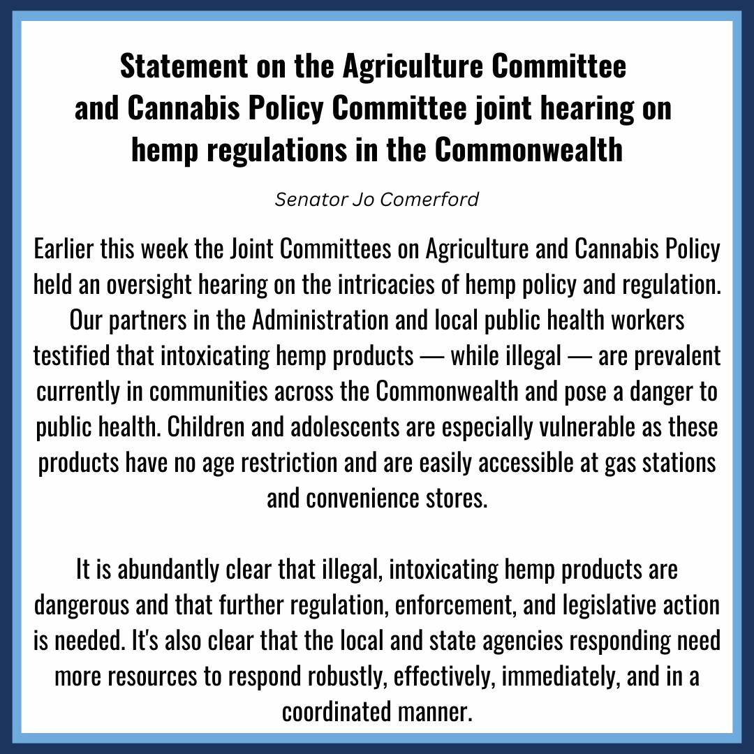 On June 11, I joined Chairs Adam Gomez, Paul Schmid, and Dan Donahue for a joint oversight hearing held by the Agriculture Committee and the Cannabis Policy Committee on hemp regulation in the Commonwealth.