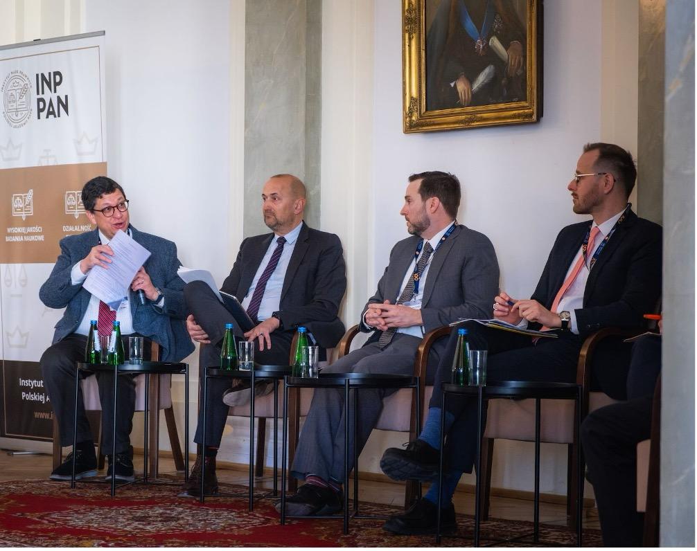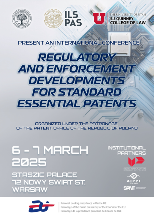 | | Professor Dellenbach’s trademark class interacts with former NFL quarterback Alex Smith. | | S.J. QUINNEY CO-SPONSORS WARSAW SEP CONFERENCE | | In March, the S.J. Quinney College of Law was pleased to co-sponsor a major international conference on standards-essential patents and litigation at the Polish Academy of Science in Warsaw. The two-day conference involved judges, government officials, attorneys, corporate representatives and academics from around the world. The conference was sponsored by leading international law firms and companies active in licensing standards-essential patents, including Platinum Level sponsors Kirkland & Ellis and Freshfields. | | | | Prof. Contreras moderating a discussion with Michael Frobisch (EPO), Christian Hannon (USPTO) and Andras Jokuti (WIPO) | | STUDENT IP SCHOLARS ASSIST FACULTY WITH RESEARCH | | |