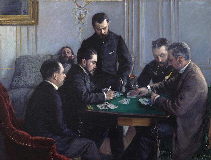 | | Gustave Caillebotte, “The Bazique Game,” c. 1881, oil on canvas, 49 5/16 x 65 3/16”. | | | |