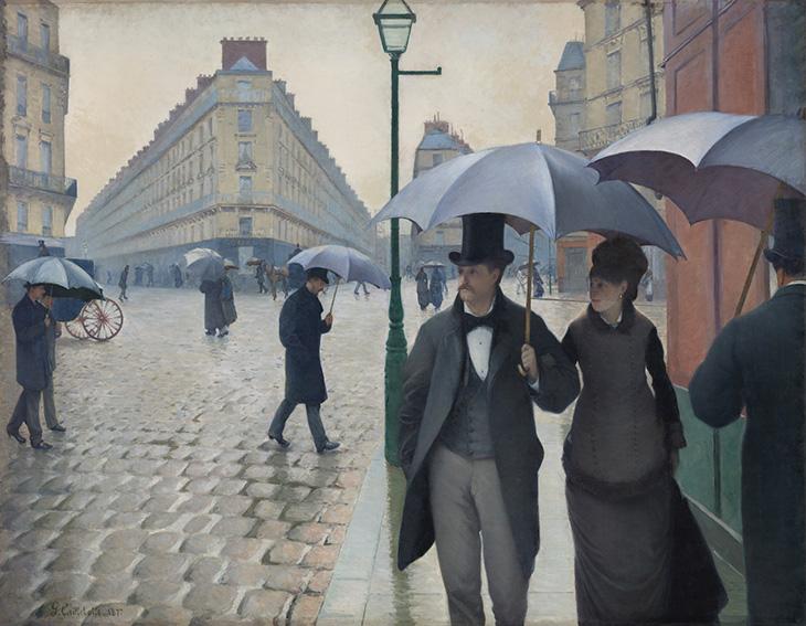 Gustave Caillebotte, “Paris Street, Rainy Day,” 1877, oil on canvas, 83 9/16 x 108 3/4”.