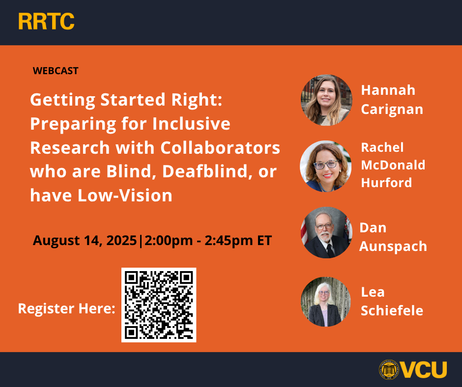 Upcoming Webcast: Getting Started Right: Preparing for Inclusive Research with Collaborators who are Blind, Deafblind, or have Low-Vision