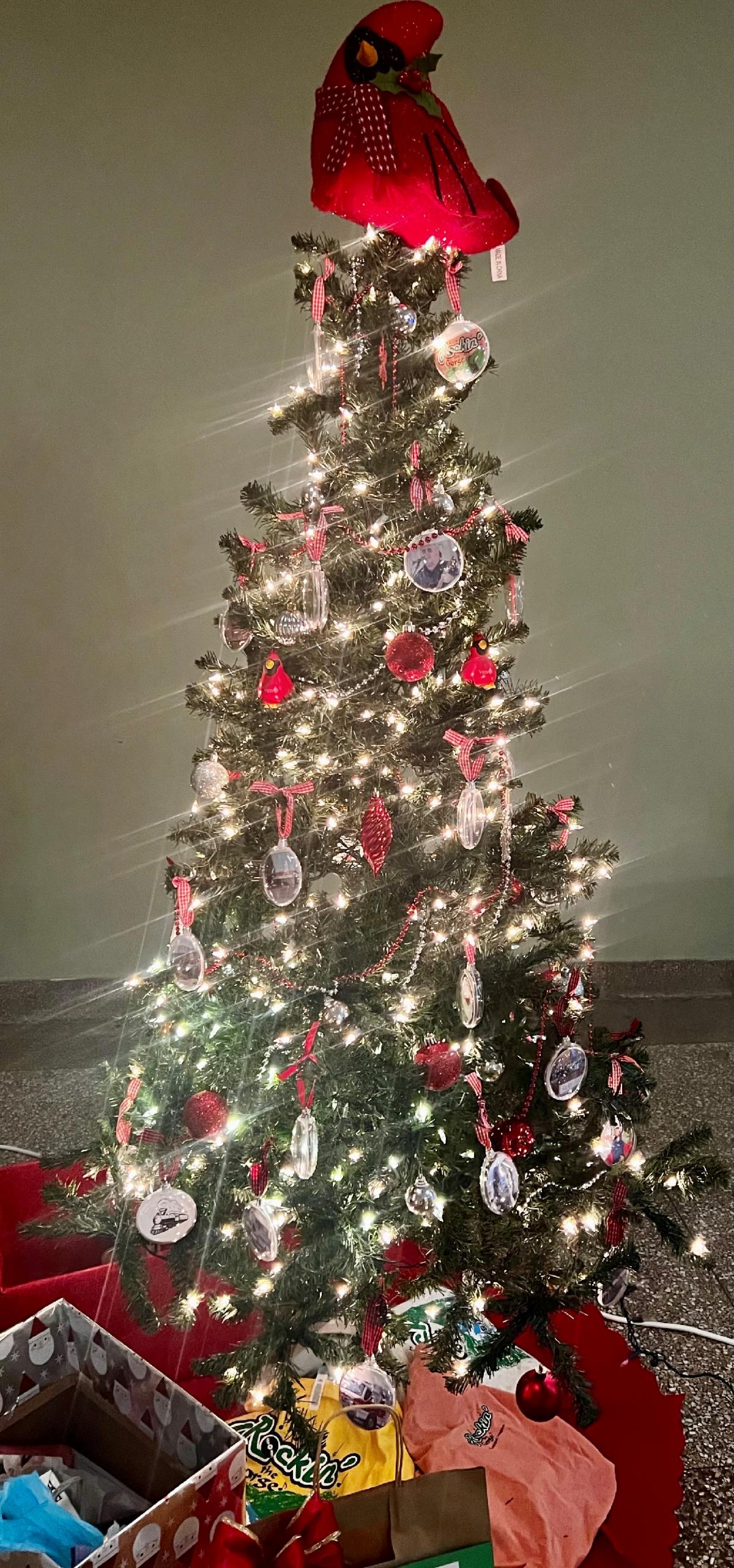 The VEDA Cardinal was seen recently on the Town of Glasgow's Christmas tree at the Festival of Trees at the Natural Bridge State Park. The cardinal just happens to be the town bird. Photo taken by Brandy Flint, Rockbridge County Office of Economic Development. | |