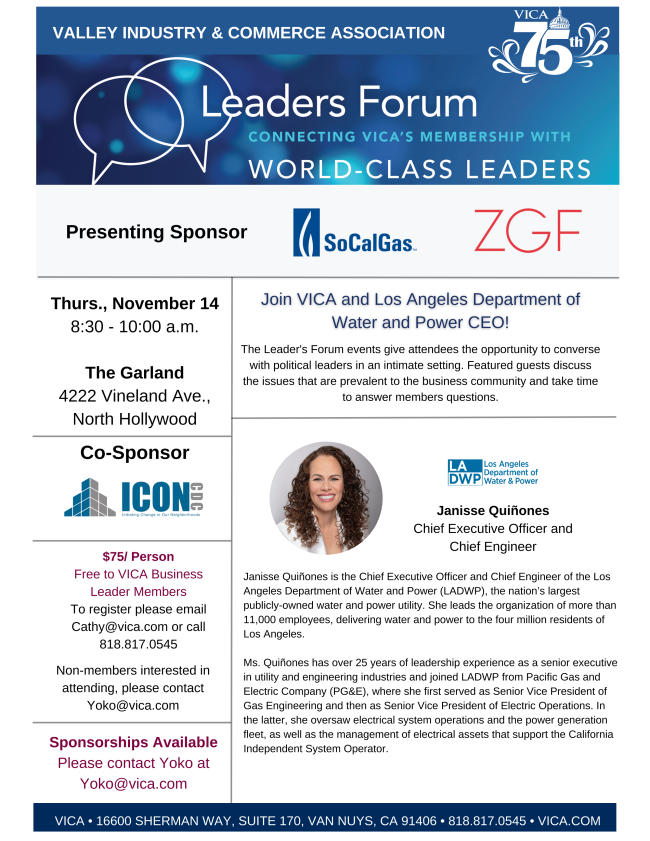 Stay informed and empowered with VICA’s Government Handbook, proudly sponsored by Clay Lacy Aviation and The Metropolitan Water District of Southern California. This essential resource provides key insights into legislative processes at all levels, helping businesses, advocates, and community members navigate the complexities of government. With the latest updates and tools, it’s your guide to making an impact in the San Fernando Valley and beyond. | |