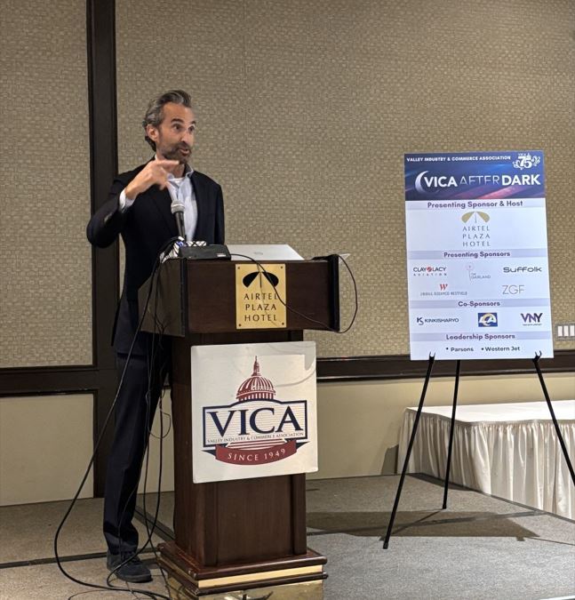 VICA hosted its After Dark event on Tuesday, October 30, at Airtel Plaza Hotel, featuring a keynote address by LAWA CEO John Ackerman. Ackerman discussed LAWA’s initiatives to prepare LAX and Van Nuys Airport for the 2028 Olympics and the World Cup, focusing on improving access and infrastructure. He outlined LAWA’s recent automated people mover project, set to open in 2026, which will ease traffic at LAX and improve airport access for travelers and employees.