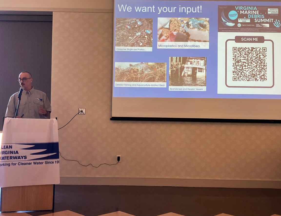 | Zach Huntington, CVW, discussing plastic reduction policy and the Virginia Marine Debris Reduction Plan. | | | |