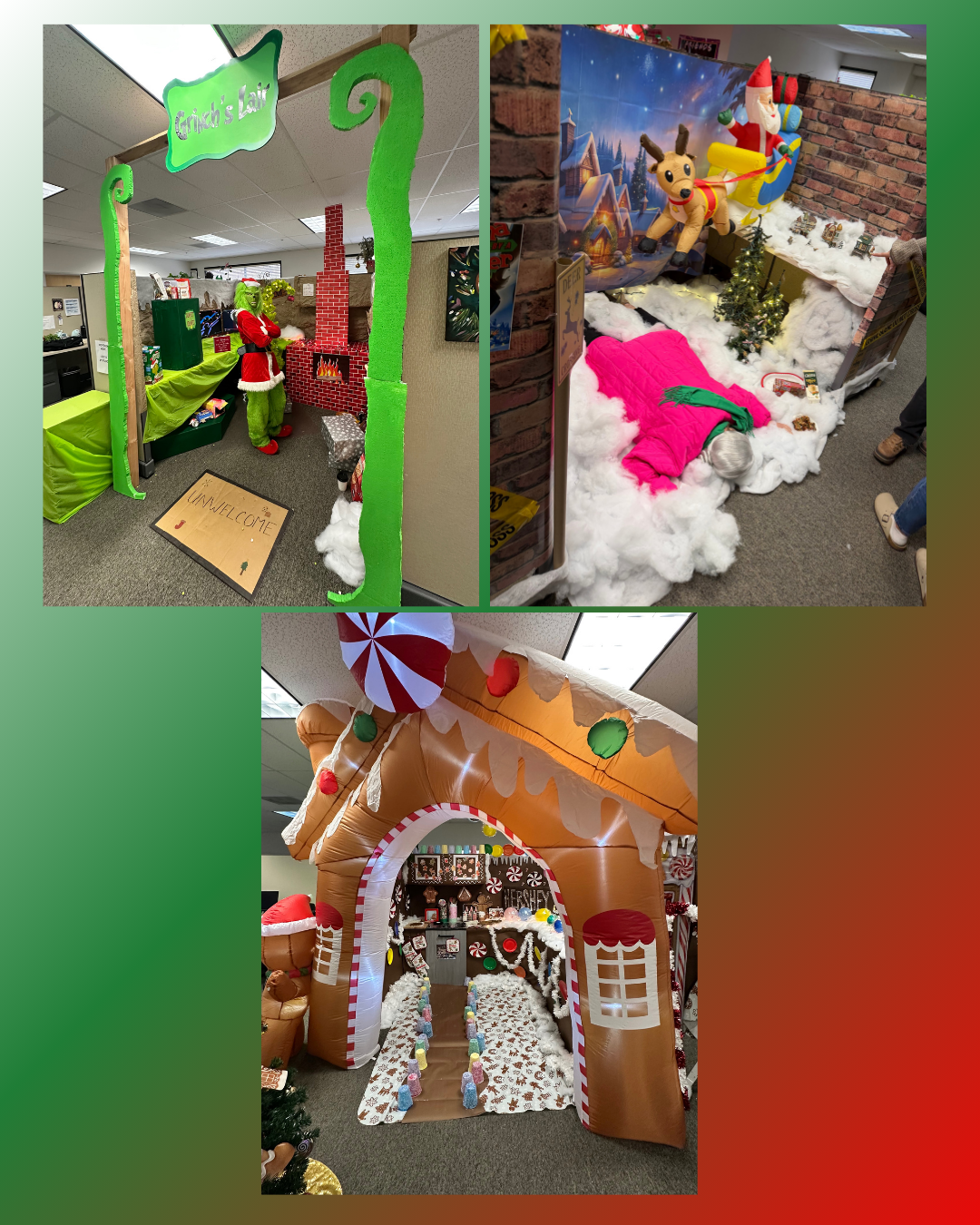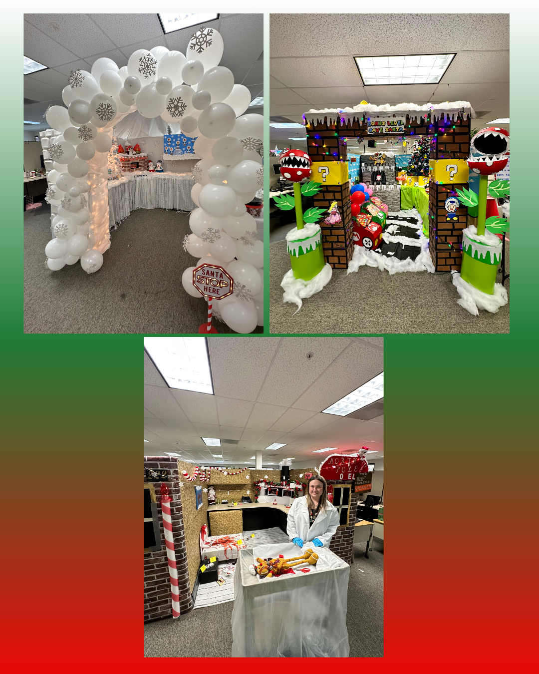 | | Holiday Cheer Around VMRC! | | The holiday cheer was felt around VMRC! Our Modesto staff were in festive good spirits for their Annual Holiday Cubicle Competition. Teams created masterful displays filling the office with merriment & joy! Themes included Santa’s Post office, Super Mario Christmas, Gingerbread house, Tree farm, Polar Express, Grandma got over by reindeer, Gingerbread Crime Mystery, Igloo, Grinch’s Lair, and Whoville. The holiday magic in the office was contagious. Cheers to all the participating teams! | | |