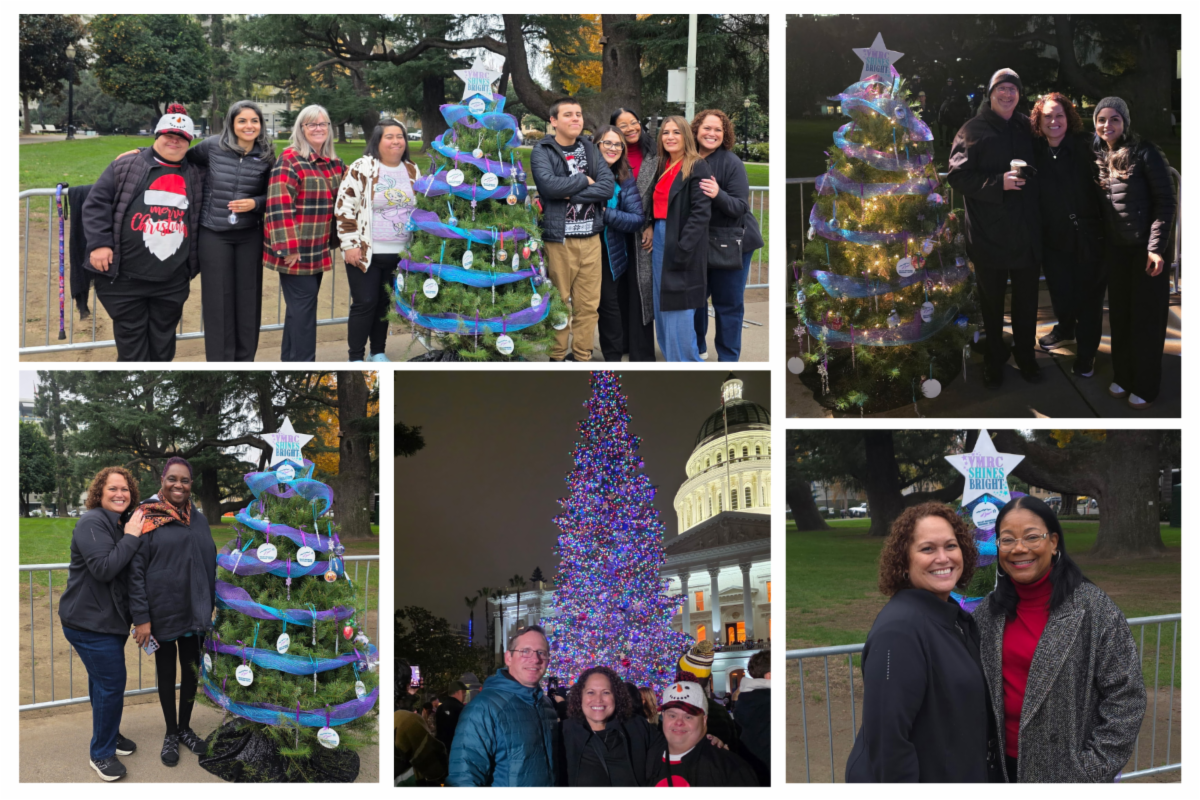 | | December 10, 2025 - VMRC Board members and staff traveled to Sacramento for the annual State Capitol Tree Lighting Ceremony. Every year, regional centers are invited to decorate a tree dedicated to their center. At the end of the evening, one client from a preselected regional center helps the Governor of California light the Christmas tree. Our Board members and staff decorated Valley Mountain’s tree and joined the festivities. It truly is a wonderful way to celebrate the season and end the year. | | |
