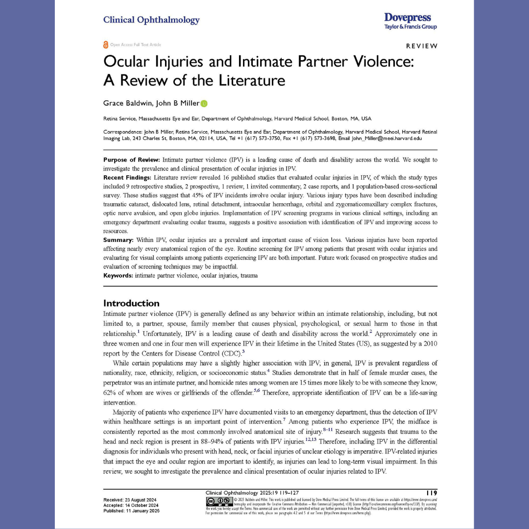 Intimate partner violence (IPV) remains a leading global cause of death and disability. This paper examines the prevalence and clinical presentation of ocular injuries in IPV cases. Download the paper here to learn more.
