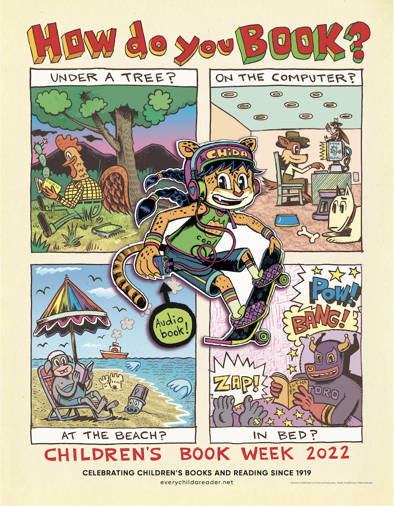 Four lucky winners will receive a limited-edition Children's Book Week poster (shown here) and one lucky winner will receive a book of their choice! (Up to a $25 value; currently published titles only; depending on availability.)