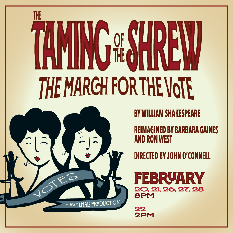 William Shakespeare's The Taming of the Shrew: The March for the Vote opens at the Williams Theatre later this February. This reimagining of Shakespeare's classic play takes place in Chicago, 1919, during the throes of the suffrage movement, and features an all-female cast of talented students and community members.