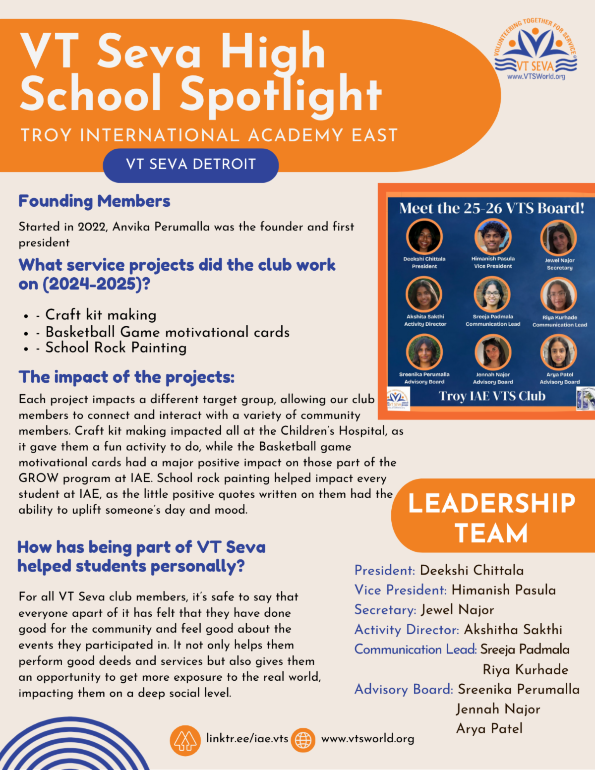 Making a Difference, Home and Abroad: This past month saw a flurry of activity as "VTSevaites" across the country, from Detroit and Atlanta to Seattle and the Bay Area, mobilized to conduct awareness and fundraising events for local causes successfully. It's truly amazing to see hundreds of volunteers making service a casual, core part of their lives.