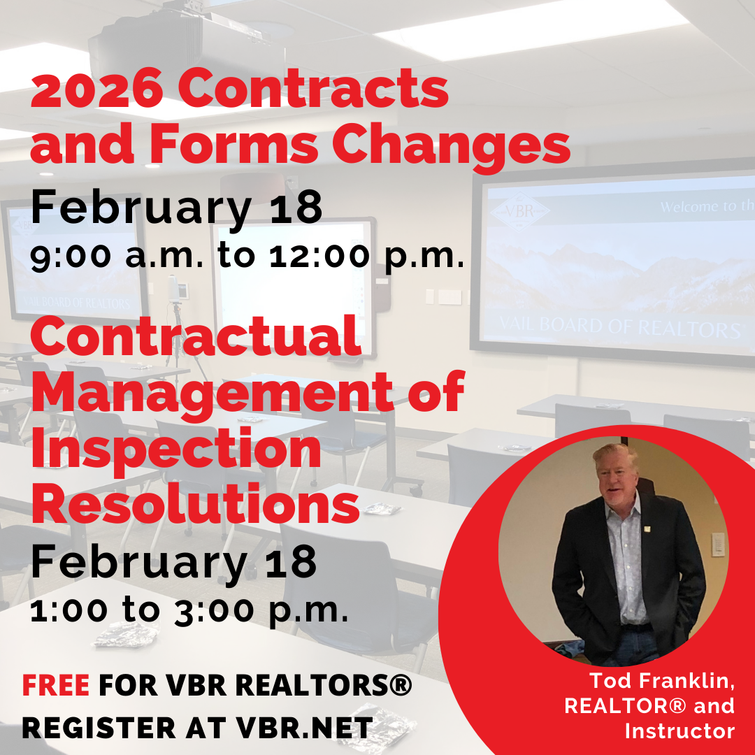 Increase your knowledge in the real estate industry and become a local expert! The Vail Pro Designation is an educational program open to ALL VBR Realtor® and Affiliate members!