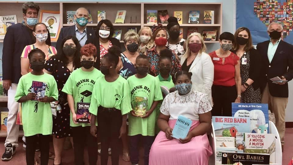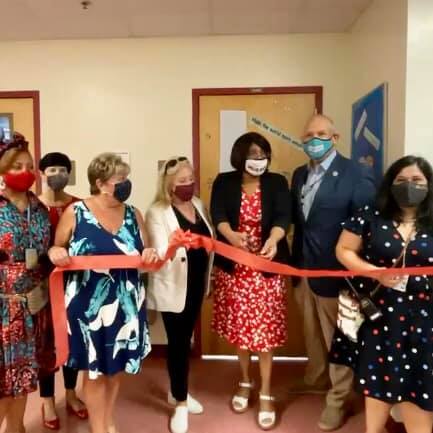 Vice Mayor Weinroth with Ms. Carson, co-founder of the Carson Scholar Fund, and Barton Elementary staff at the ribbon-cutting for their new Ben Carson Reading Room