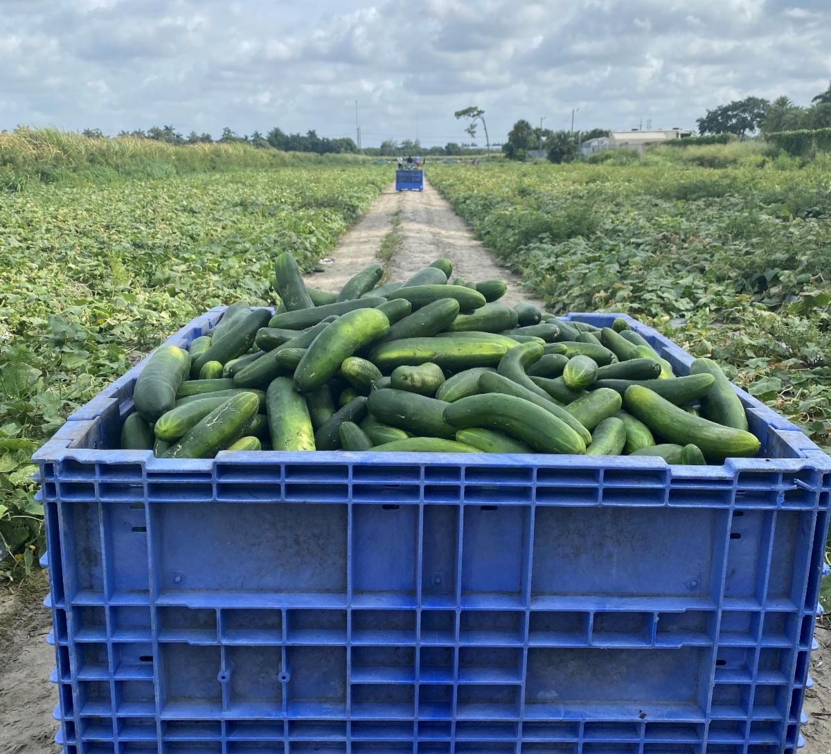 Volunteers filled six total cucumber bins