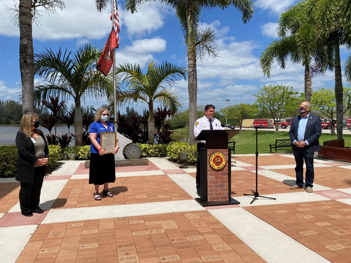 Vice Mayor Weinroth presented a proclamation declaring April Drowning Prevention Awareness Month to emergency managers and staff at the county's Fire-Rescue Department and the Drowning Prevention Coalition.