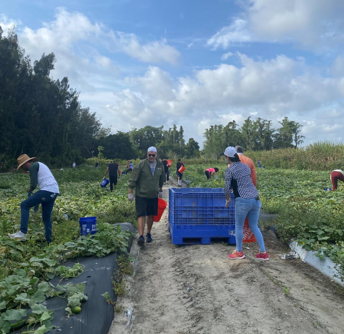 Volunteers working in the cucumber field