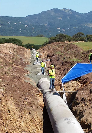 The City of Vallejo's Monticello Emergency Pipeline Replacement Project was recognized as Project of the Year by the American Public Works Association (APWA), Northern California Chapter, at its annual awards banquet. City of Vallejo Public Works Department staff, led by City Engineer Jill Mercurio and former Assistant Public Works Director-Water Franz Nestlerode, received the award on February 25. Awards are given in five categories: Structures, Transportation, Environment, Historical Restoration/Preservation and Disaster or Emergency Construction/Repair. Each Category is further divided based on the cost of the project. The awards were established to promote excellence in the management and administration of public works projects by recognizing the alliance and collaboration between the managing agency, the consultant/architect/engineer, and the contractor. Phase 1 of the construction project won in the "Disaster or Emergency" category for projects under $5 million. It was nomin ated because of the extraordinary marshalling of resources by staff in terms of how quickly the project was designed, material suppliers identified and those that produced the necessary pipes, and environmental mitigations that were identified and accommodated. This project, including planning and construction, occurred in a little over four months and is now eligible for a National Project of the Year award. The APWA Awards Program is the most prestigious in the public works world today and annually recognizes outstanding individuals, groups, and chapters who represent excellence in the public works profession. The project, which will begin its second phase in the coming months, has allowed the City to continue to provide water to customers at a normal rate instead of implementing emergency, mandatory water rationing and 40 percent water use reductions. |