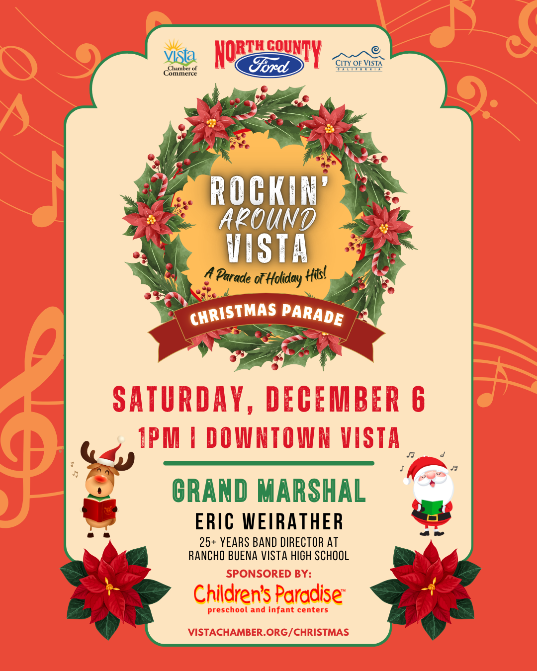 Join us for the 67th Annual Vista Christmas Parade! With this year's theme, "Rockin' Around Vista", we're highlighting the songs that make the holiday season magical!