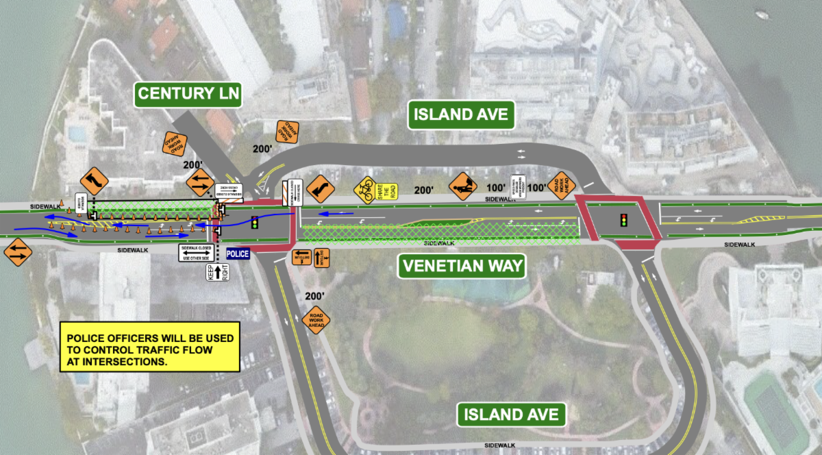 - The eastbound lane on Venetian Way between Island Ave will be closed.