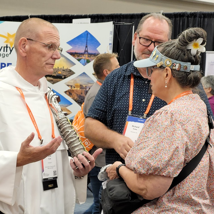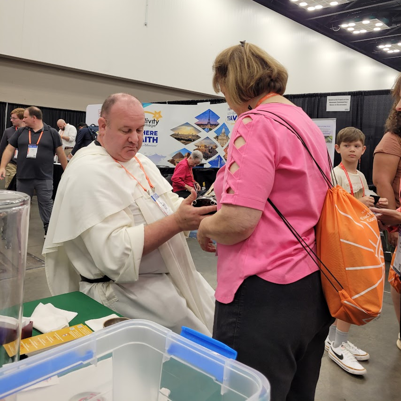 Fr. Mike Ford, OP, brought the arm of St. Jude to the Expo Hall, distributing blessings to thousands of visitors who venerated the apostolic relic.