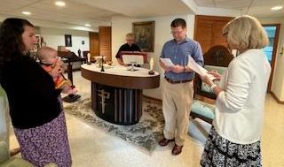 Mr. Andrew Klusman of the Queen of the Rosary Fraternity, Milwaukee, WI, was received into the Order on August 17, as witnessed by President Ms. Susan Henderson, OP; Fr. Leon Martin, SAC; Dominican Sisters of the Perpetual Rosary; and Mr. Klusman's wife, Atalie, and son, Roman.
