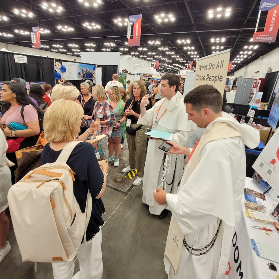 Fr. Cavanaugh noted, "The hall was open from noon to 6:30 p.m. for four consecutive days; during that time, interest in our booth never abated. As people streamed by to pray with St. Jude, we enrolled people in the Rosary Confraternity, shared information about the Dominican Laity, and directed people to our Vocations Booth further down the hall. Through all this, our Lay Dominicans volunteered to distribute rosaries, collect enrollment forms, and hand out pamphlets."