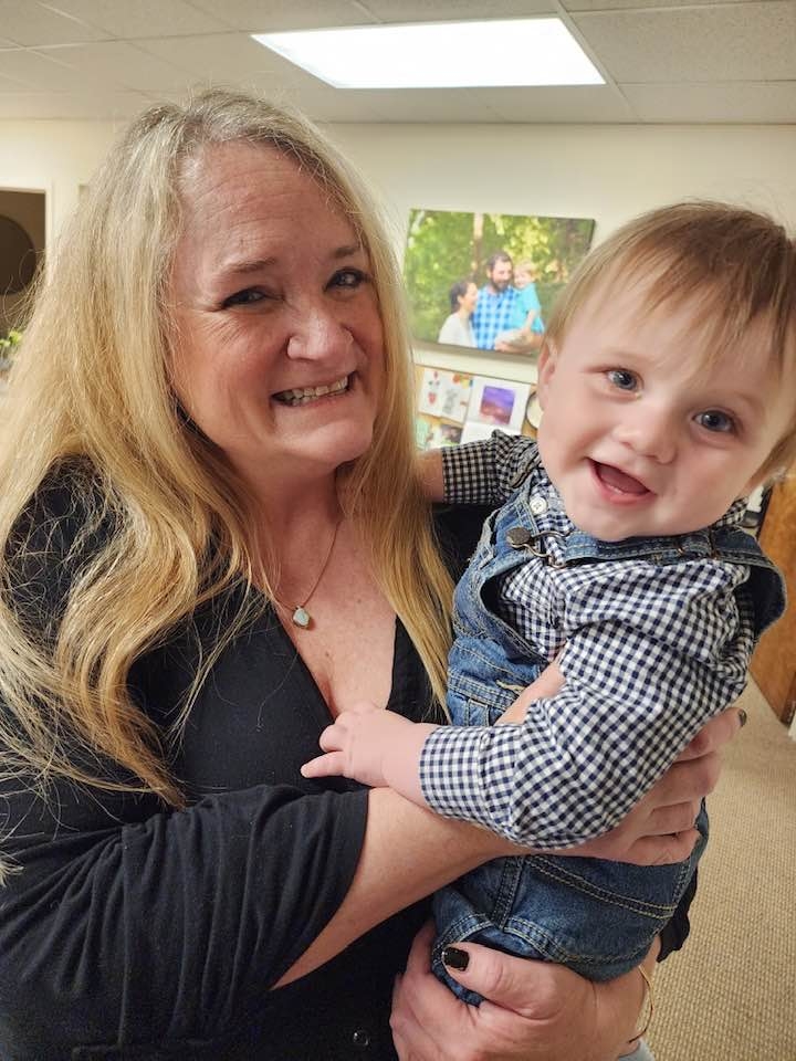 Photo: Dr Jacqui Kelleher smiling and holding her grandson
