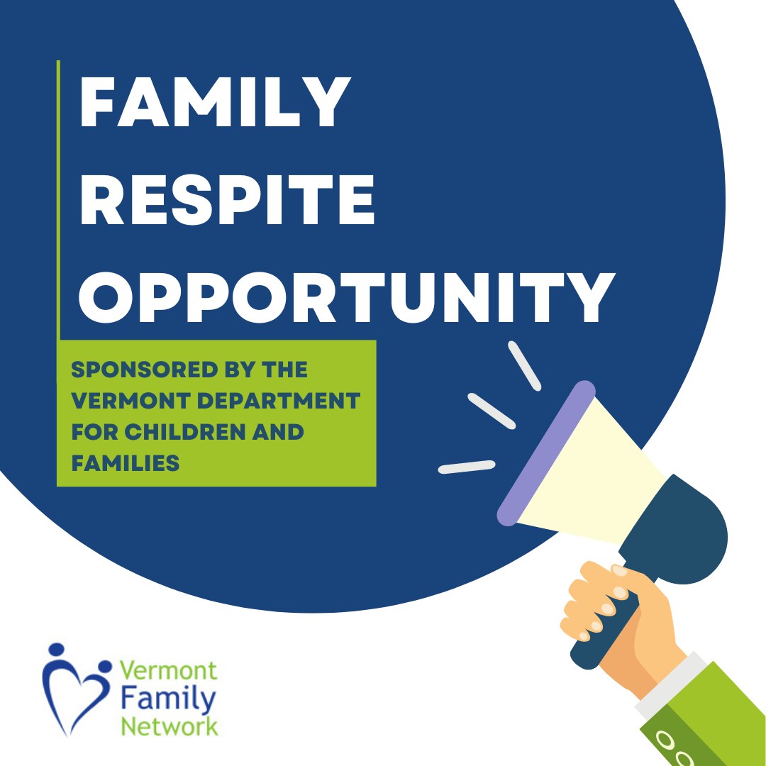 Vermont Family Network (VFN) was recently awarded a grant by the Vermont Department of Children and Families - Child Development Division to assist families with respite. Respite provides short-term relief for parents or primary family caregivers to attend to their own and other family members’ health, social, or emotional needs.