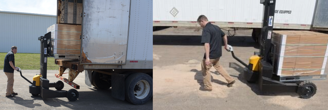 When goods have to be transferred over uneven and rough surfaces, look no further than the electric powered rough terrain stacker. With its large front and back rubber tires this unit can easily be used both indoors and out. A multi-function driving handle features an infinite speed adjustment, simple controls for finding the perfect height, and an emergency reverse function. Forks are adjustable to precisely fit what it being maneuvered. And, even more, the unit is equipped with batteries, integral battery charger, and battery level indicator.