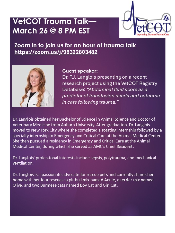 If you have topics you would like to see reviewed, please submit your suggestions to info@vetcot.org.