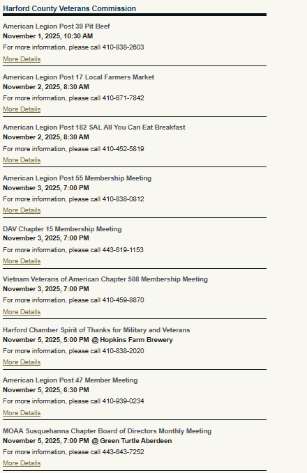 The Commission’s website features a comprehensive resource guide for veterans, active-duty service members, and their families, offering connections to local, state, and federal programs for healthcare, employment, education, and housing assistance. Check out the Harford County Veterans Commission website for additional information.