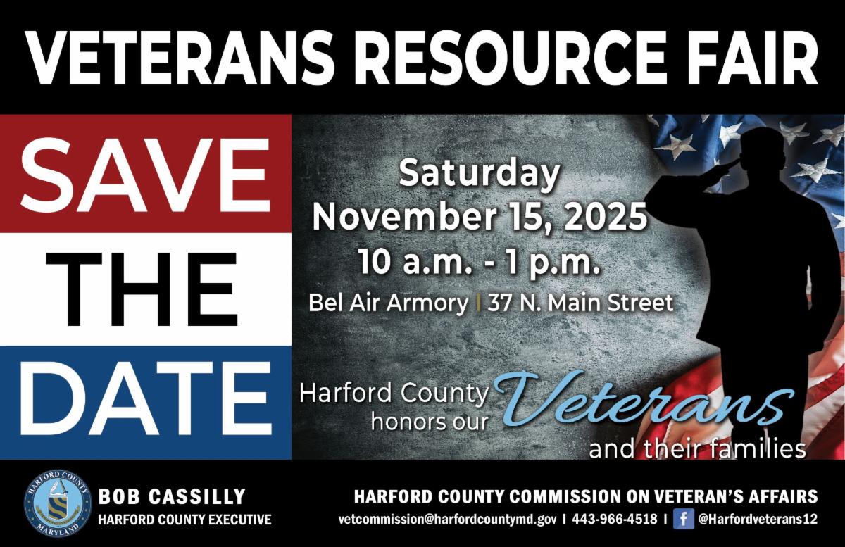 The Harford County Veterans Commission invites all veterans, active servicemembers, and their families to the 2025 Veterans & Family Resource Fair.