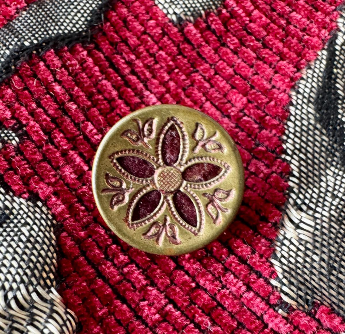 Some perfume oils were known to stain clothing, and that was unacceptable to Victorian ladies. A smart solution was the manufacture of buttons that had a cloth base, often velvet, that could absorb fragrances. Adorned with metal floral designs, these buttons were both practical and stylish!
