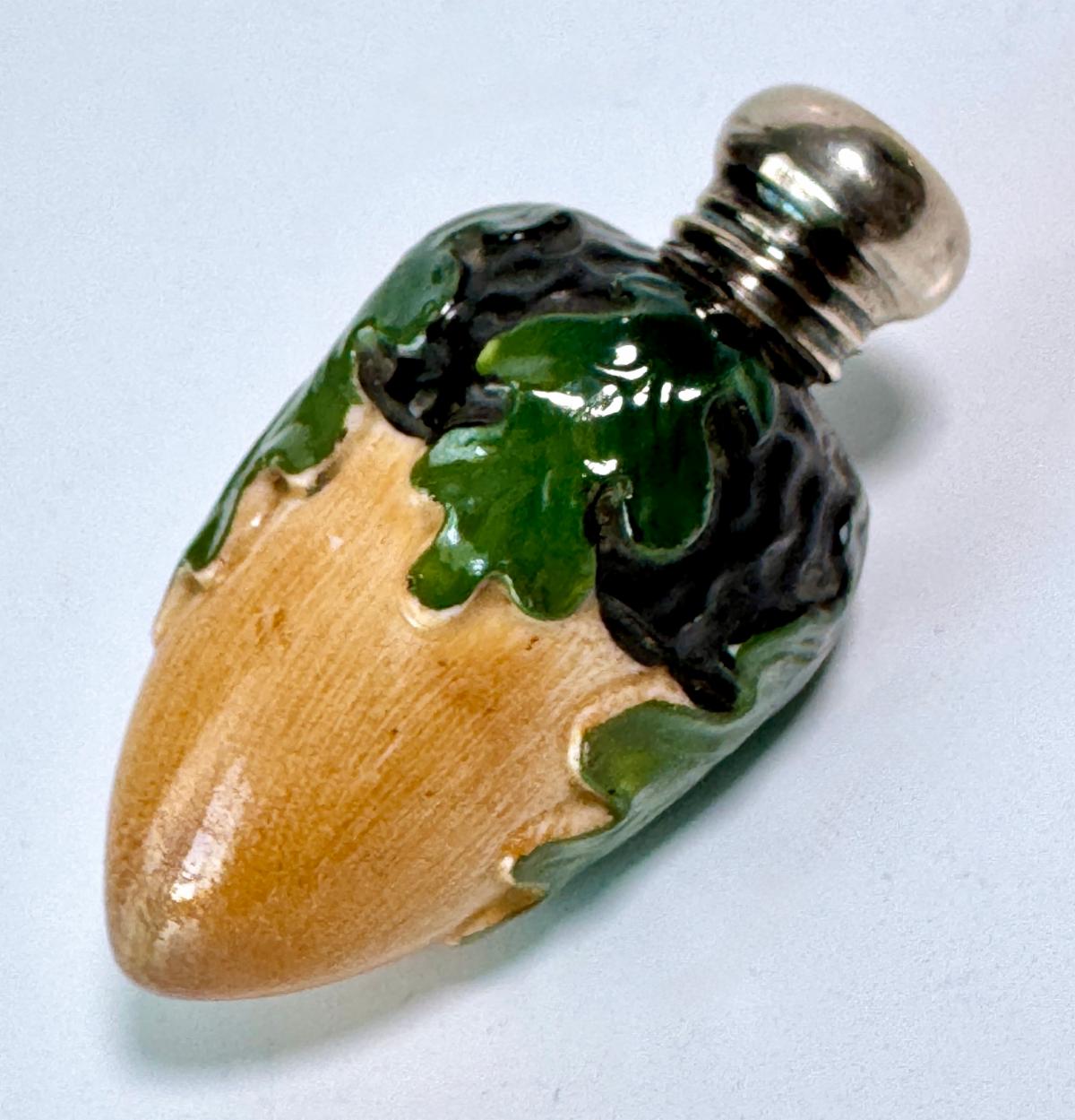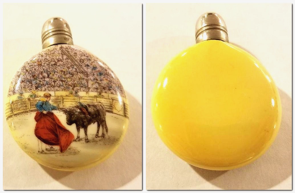 Victorian perfume bottles were also made of porcelain with beautiful florals, scenics or portraits. Many included a finger ring so a lady could dance the night away while carrying her favorite scent! | |