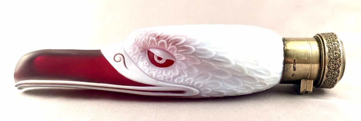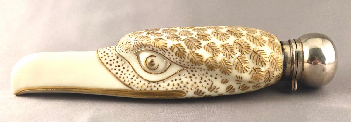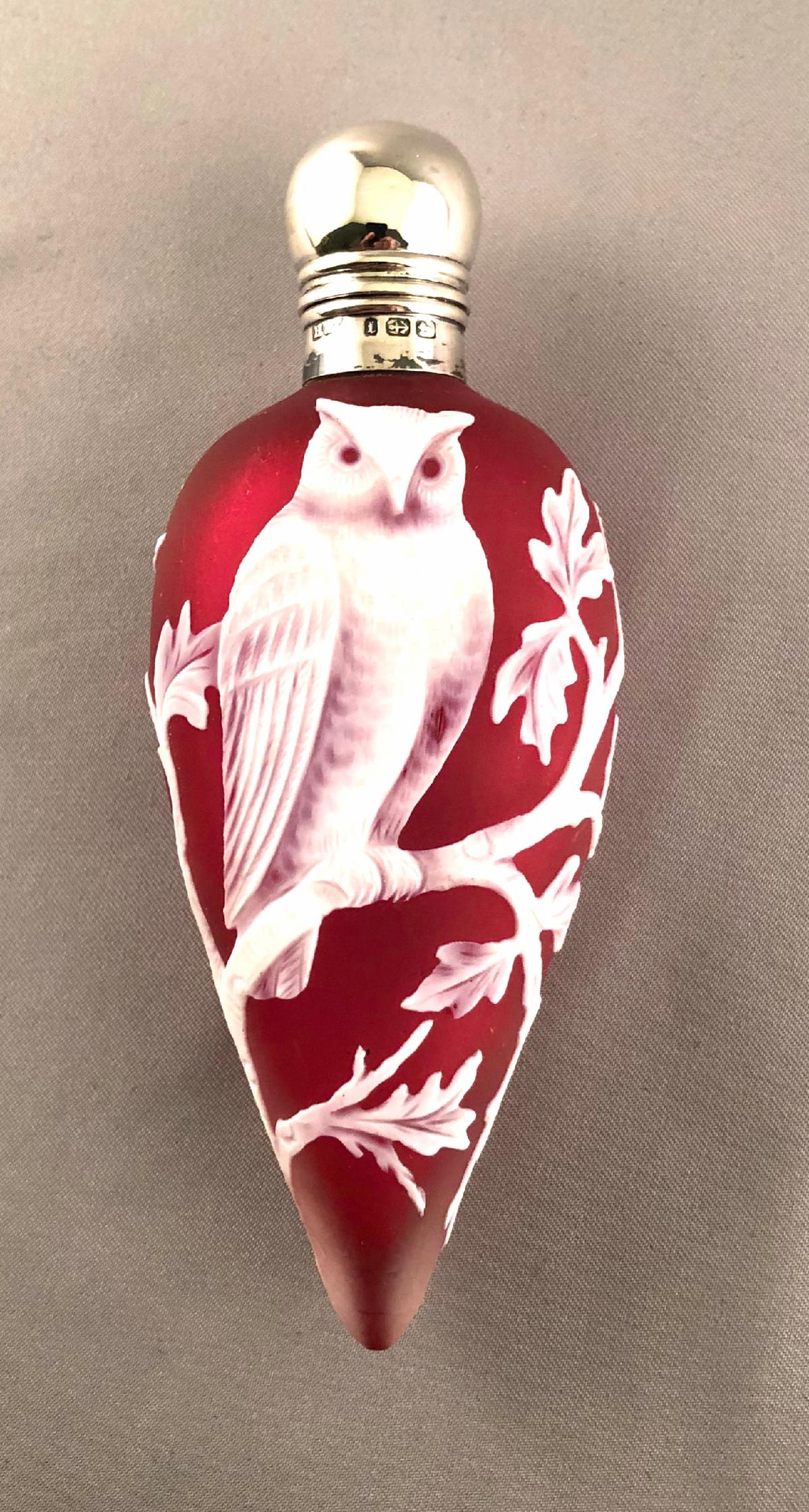 While the cameo technique has its roots tracing back to ancient Roman times, it was during the Victorian years that high-quality cameo glass perfumes flourished. Mythological scenes, portraits, birds, owls and swans graced the bottles produced by prominent English glassmakers including Thomas Webb and Sons, Stevens & Williams and Philip Pargeter. The vault gallery at Perfume Passage includes a display of beautiful Victorian cameo glass perfumes!