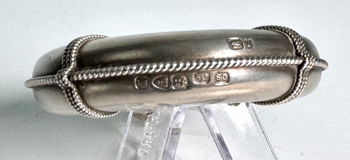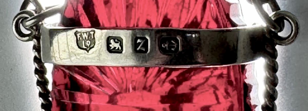 It includes hallmarks in several places for the Birmingham assay office, lion (sterling) and the letter 'z' that dates it to 1899. It also has the company initials FWT, which was the F.W. Turton Ltd. company from Birmingham, England.